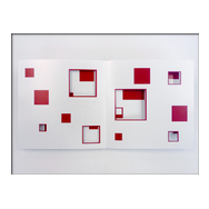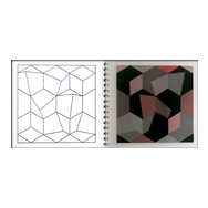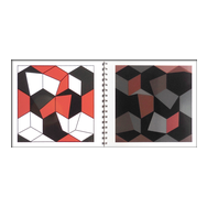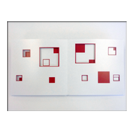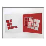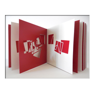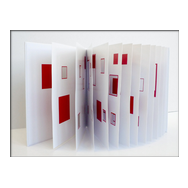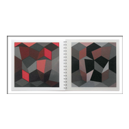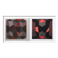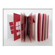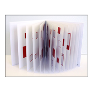 alea iacta est: in diesem Buch entstehen und vergehen perspektivische Würfelkörper. Beim Blättern der Seiten legen sich rote und schwarze Flächen übereinander und ergeben immer neue Konstellationen farbiger Würfel, die sich verdecken und wieder freigeben - Variationen in Fläche und Form.